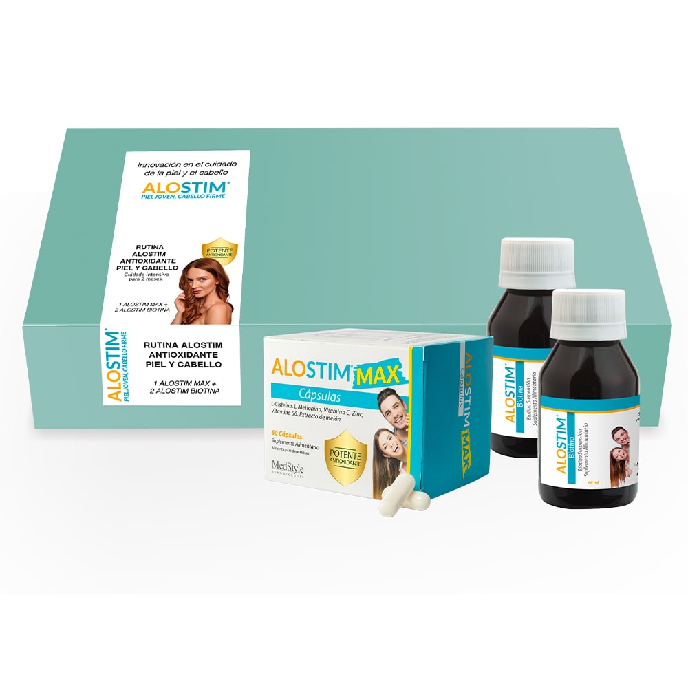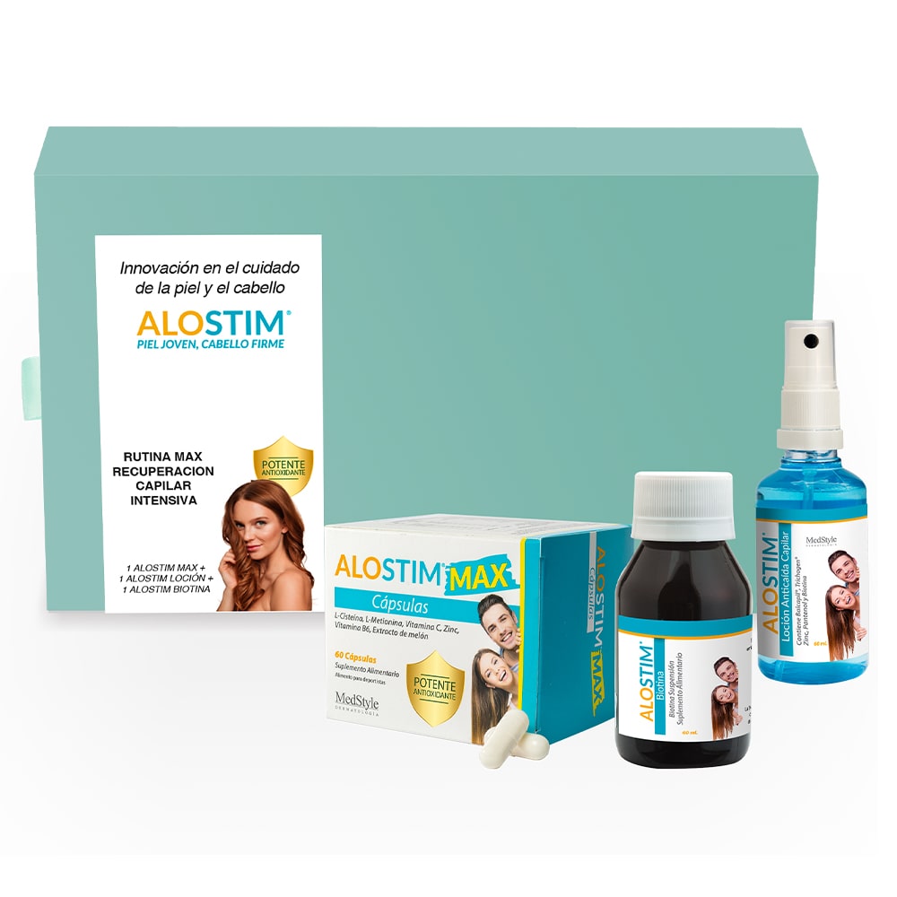 Incluye 3 Productos: 1 ALOSTIM MAX + 1 ALOSTIM LOCIÓN + 1 ALOSTIM BIOTINA